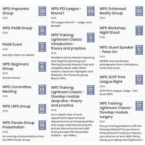 Announcing the availability of the WPS events programme for the year beginning September 2019